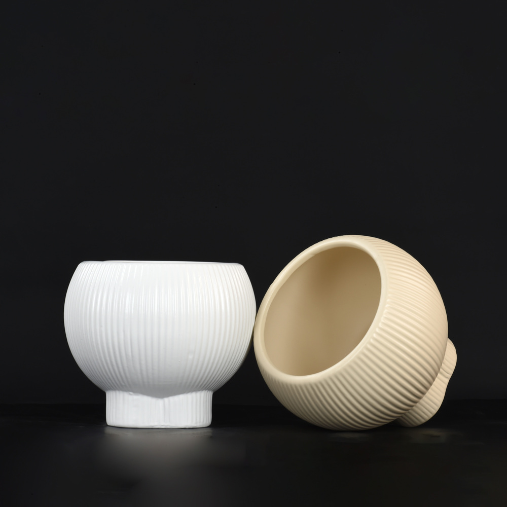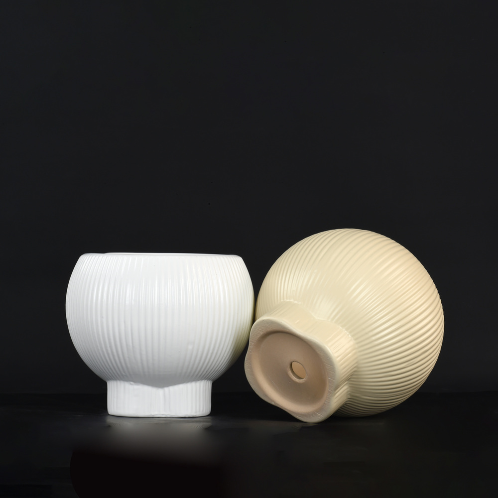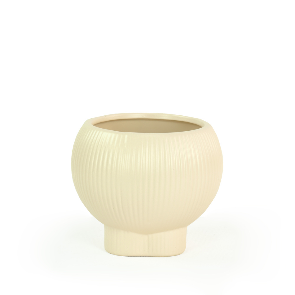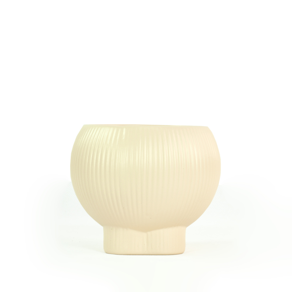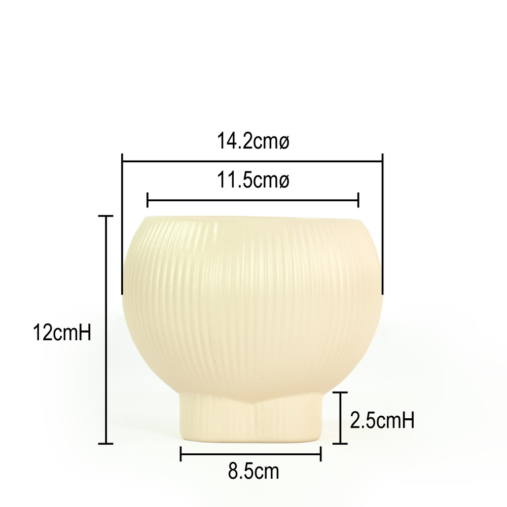 Ceramic – Round Bowl Vase w/Vertical Line (Short Flower Base). Color: Matt Cream. Size – TØ 14.2cm x H12cm.