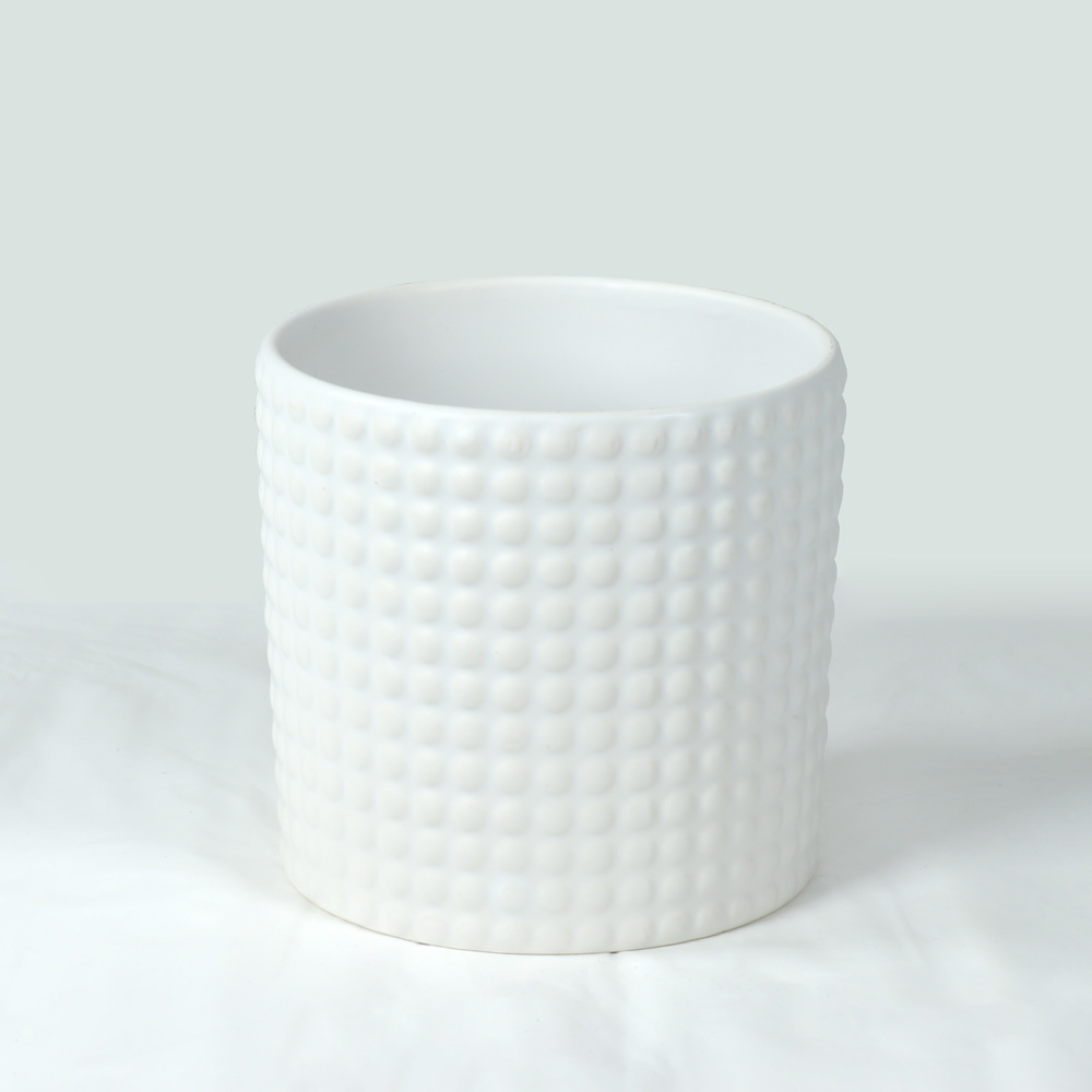 Ceramic – Round Cylinder Vase w / Checkered Dot Design. Color: White. Size – TØ 13cm x H12cm