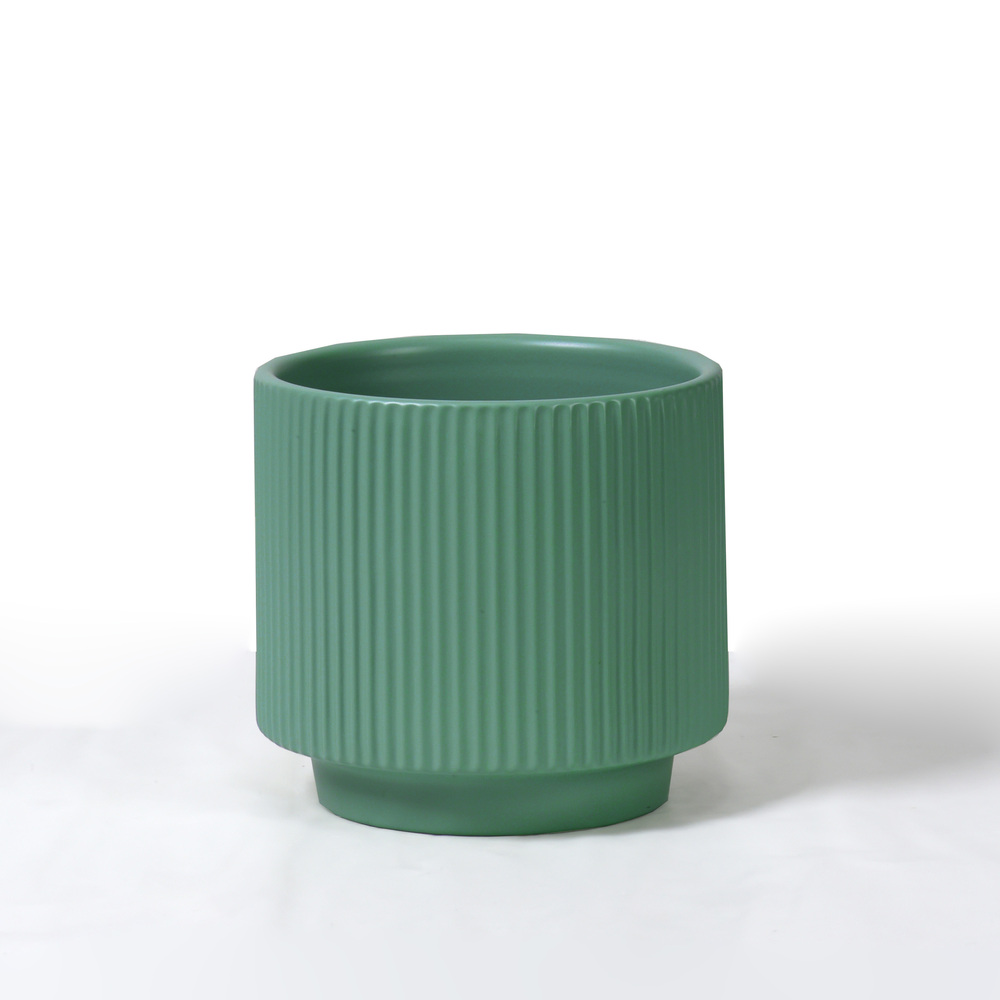Ceramic – Round Cylinder Vase w/Vertical Line & Short Base. (L) Color: Mint . Size – TØ 20.5cm x H 16cm.