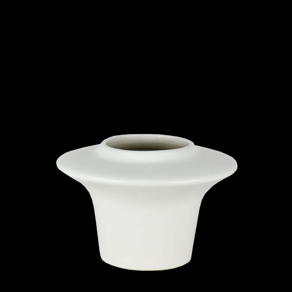 Ceramic Vase – Round Saucer Shape Design – Color – White. Size – (S). approx TØ 13cm x BØ 13.5cm x 17cmH