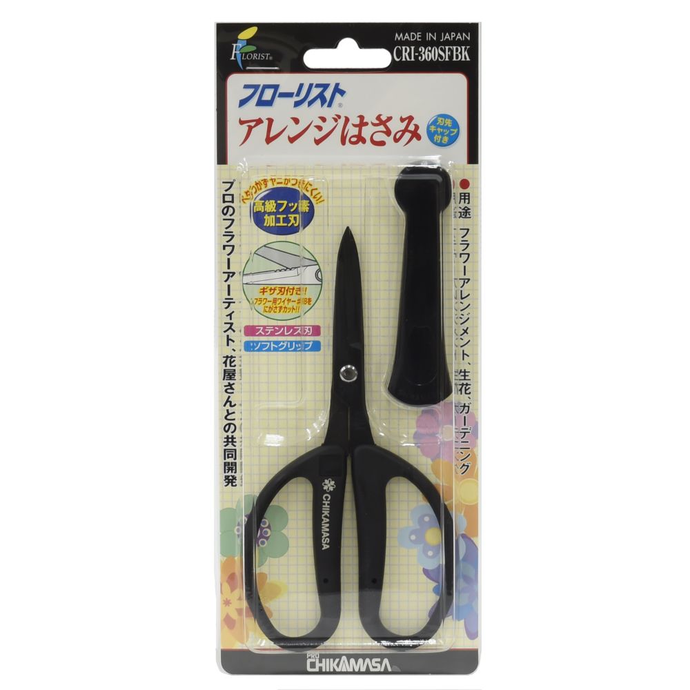 Chikamasa Florist Shears – CRI-360SFBK (Black). Length: 160mm/Blade 45mm. (Stainless Steel with Fluorine Coating).