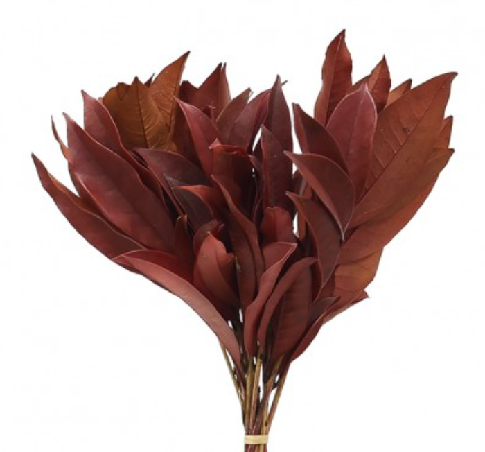 (China) Osmanthus Leaves – Wine Red. Length 25-30cm. Approx. 10 stems per Bunch