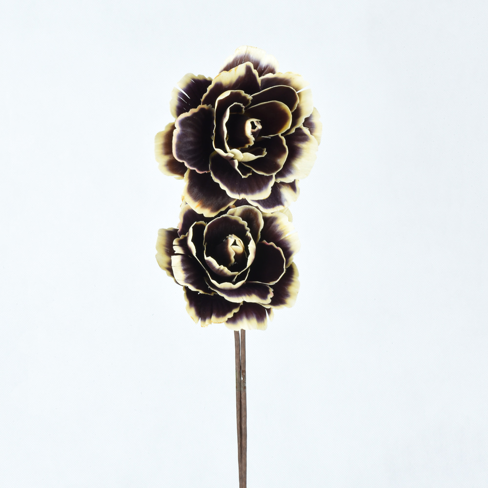 (China) Peony Wood Flower with Wire Stem – (2 Tone Coffee) – 13cmØ x 40cm Length x 2pcs