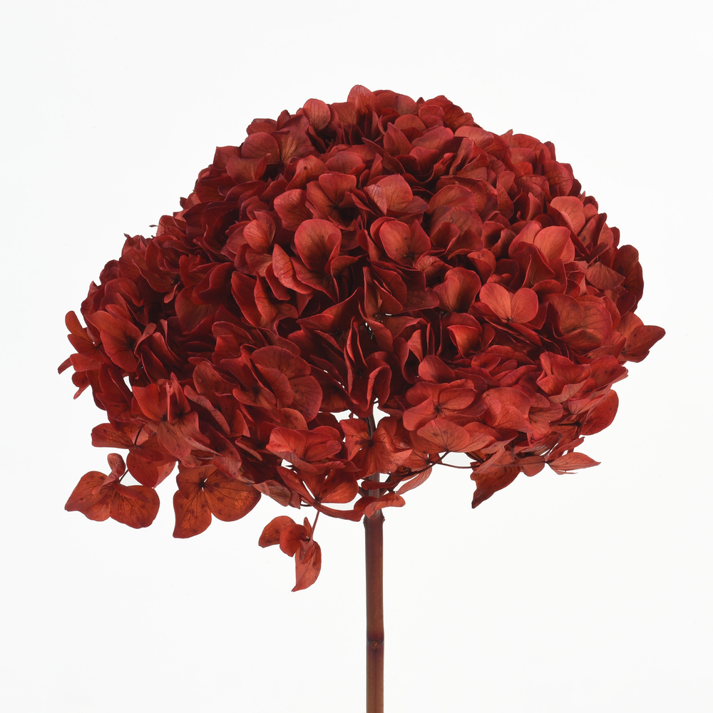 (China) Preserved Hydrangeas w/stems – Abso-Orange. 15-20cmØ. Length: 45-50cm. Grade A