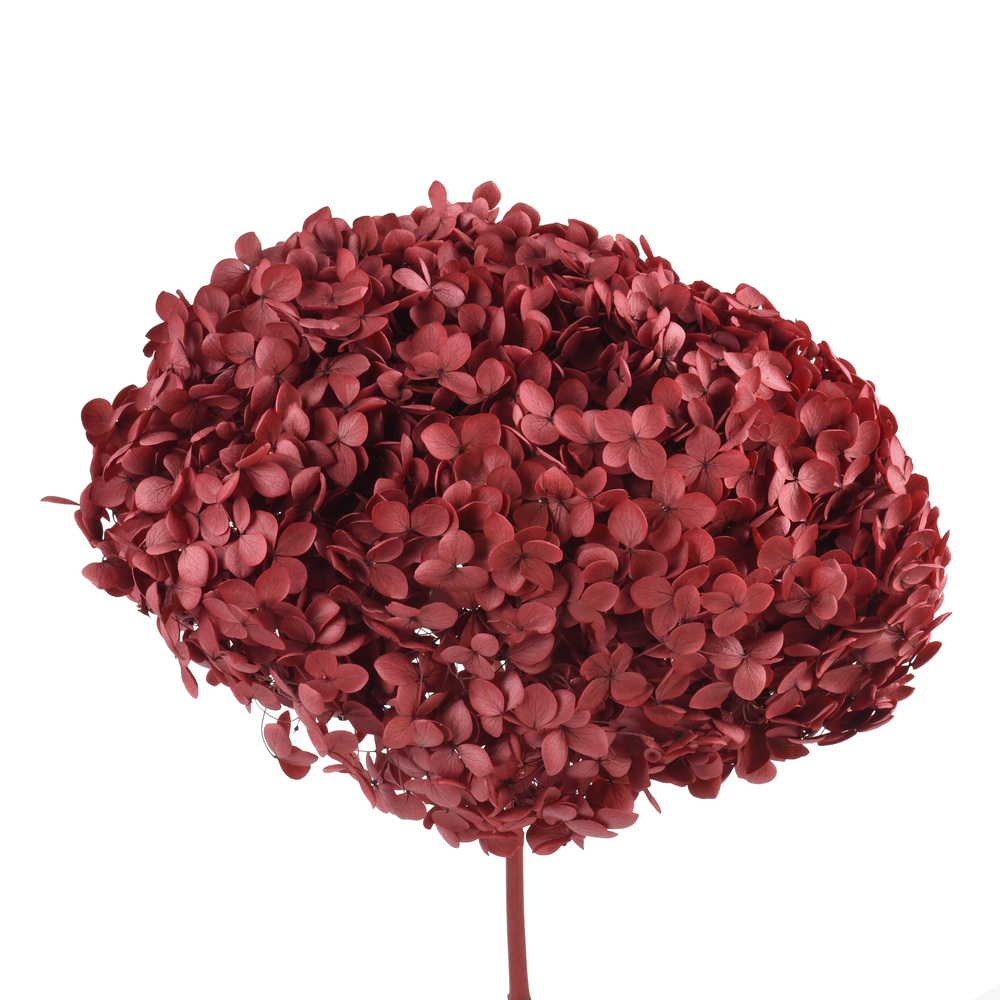 (China) Preserved Hydrangeas w/stems – Abso-Red. 15-20cmØ. Length: 45-50cm. Grade A
