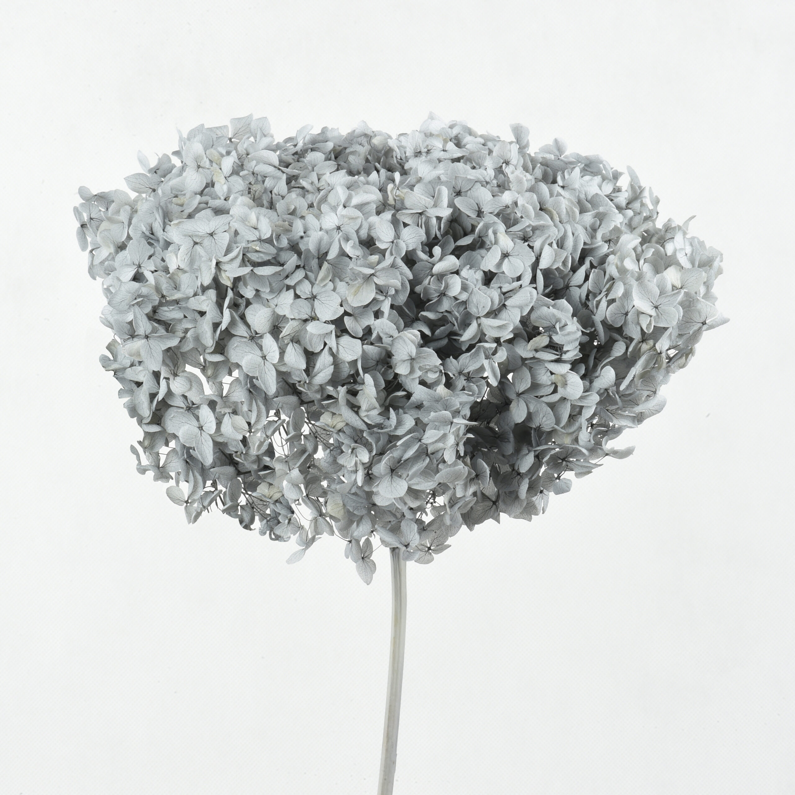 (China) Preserved Hydrangeas w/stems – Light Grey. 20-25cmØ. Length 50-55cm. Grade A