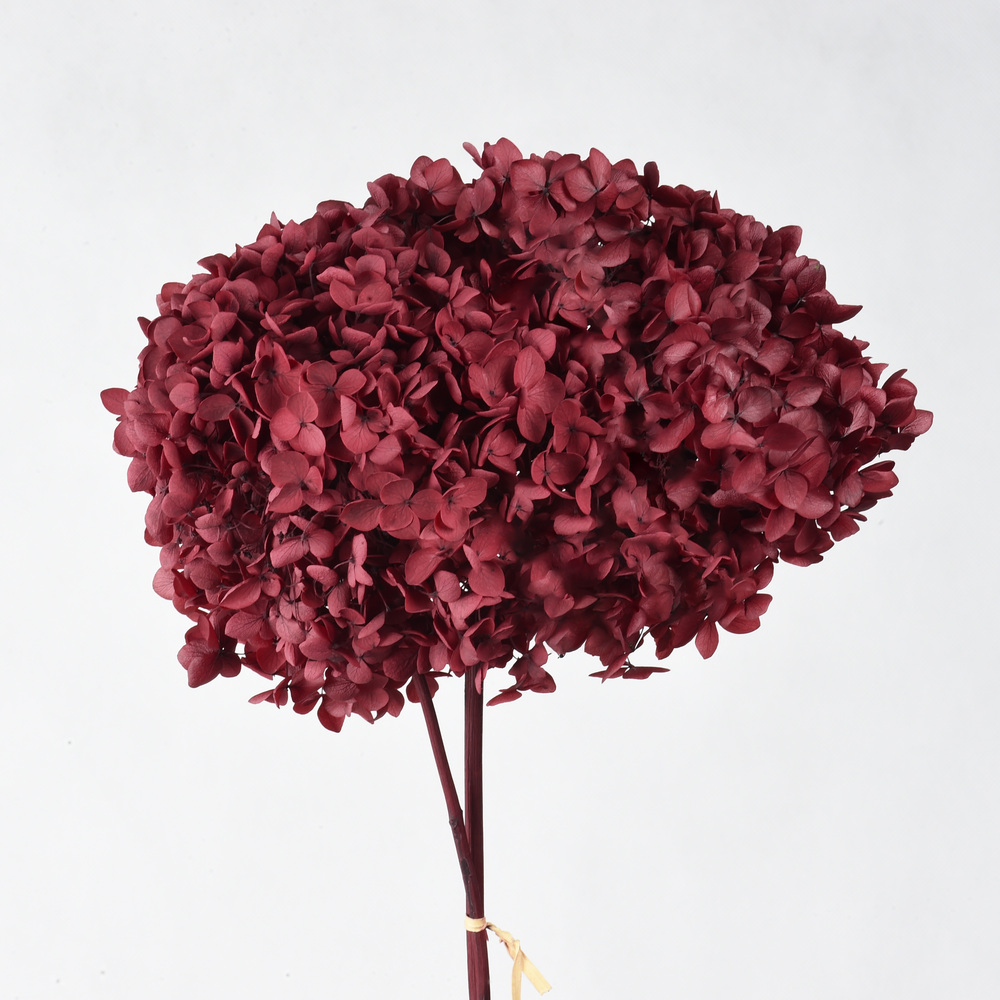 (China) Preserved Hydrangeas w/stems – Red. 20-25cmØ. Length 50-55cm. Grade A