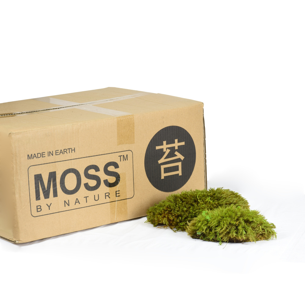 MOSS by Nature – Preserved Mood Moss. Size: 10-25cmØ 5-8cm Thickness – Lime Green. 1 Sq. m per BB Box