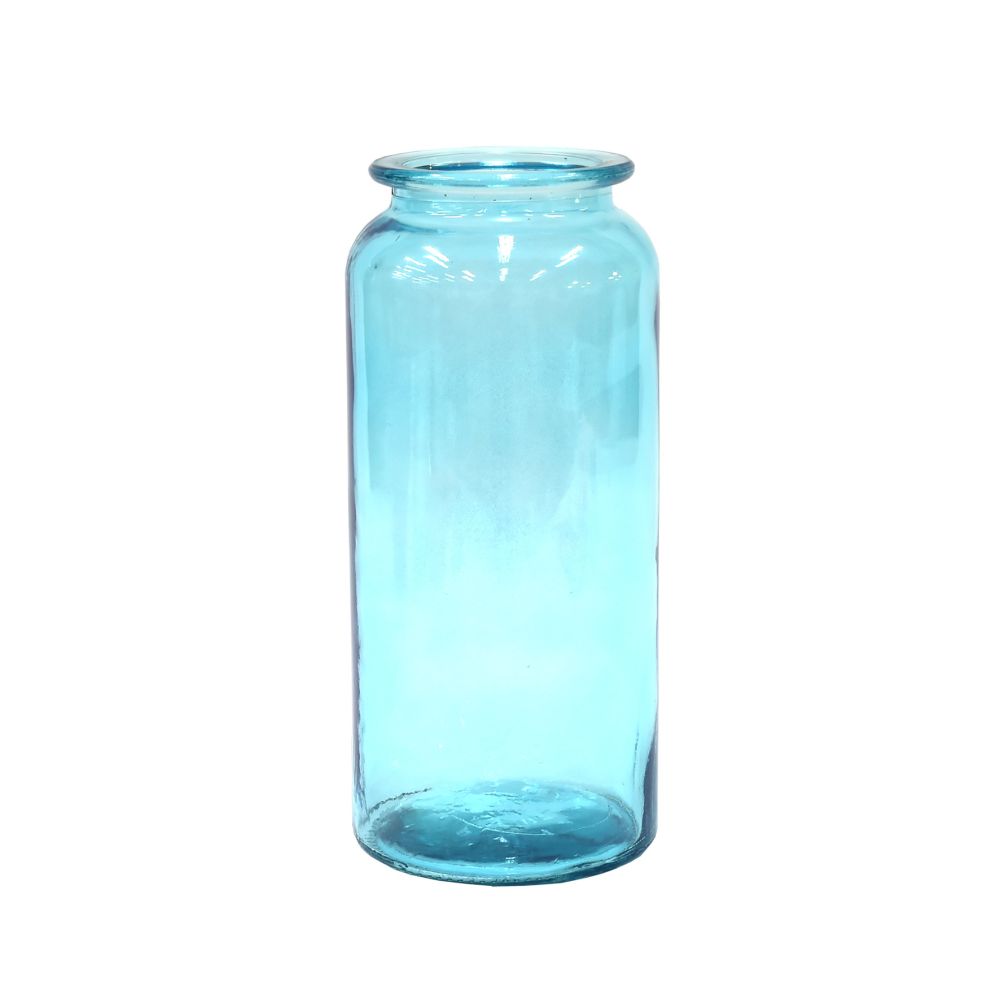 Cylinder Glass Vase with Rim – Blue. Size: XL (25cm x 11cm)