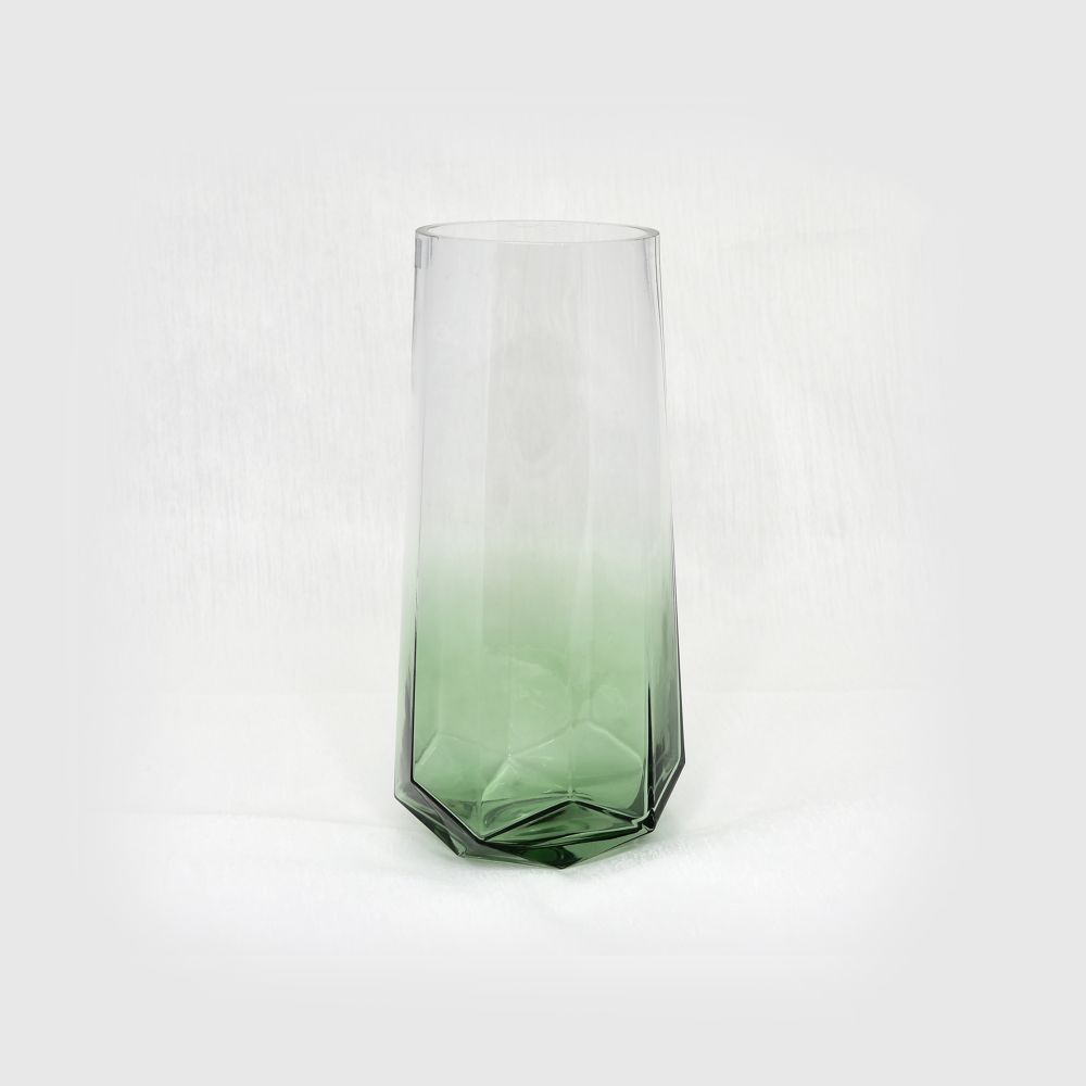 Diamond Cut Glass Vase – Green Color. Medium Size: 8.5cmØ x Height 22.5cm