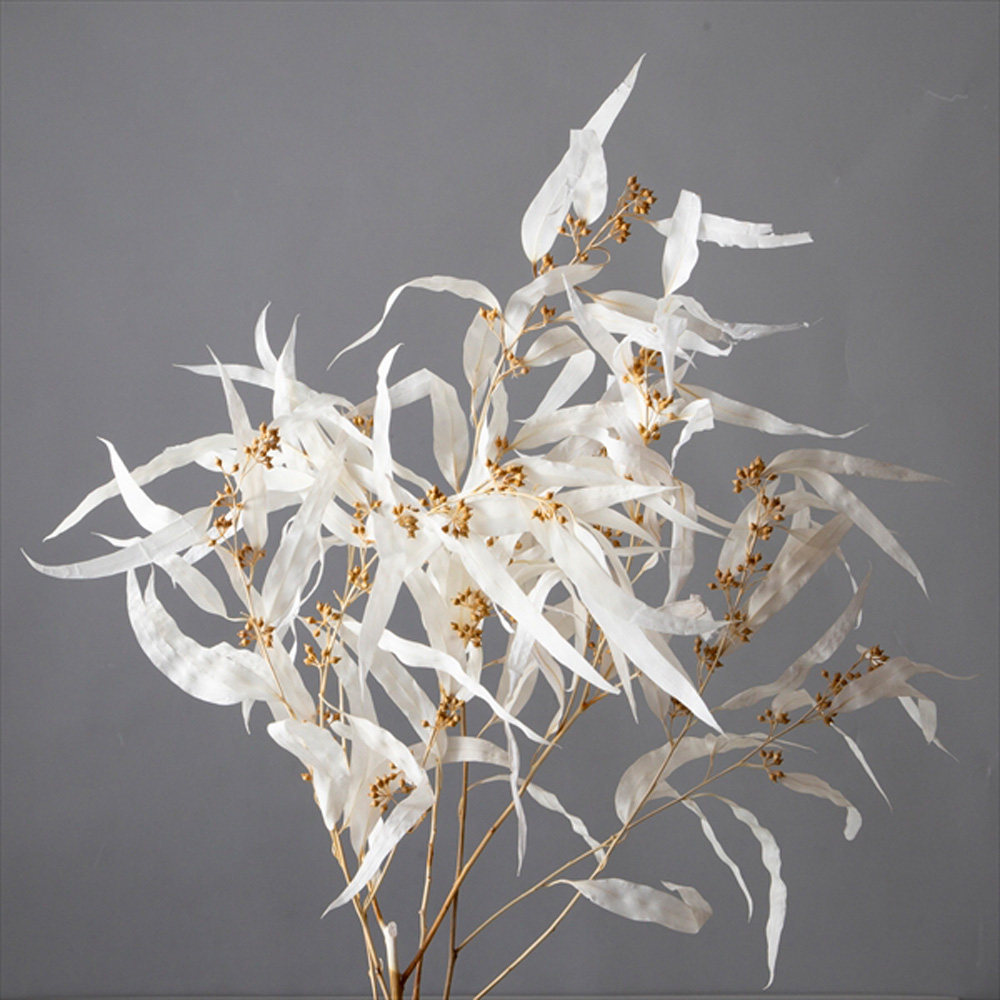 Eucalyptus Exotica with Leaves – 50-55cm L. Off White. (abt 25g Bunch)