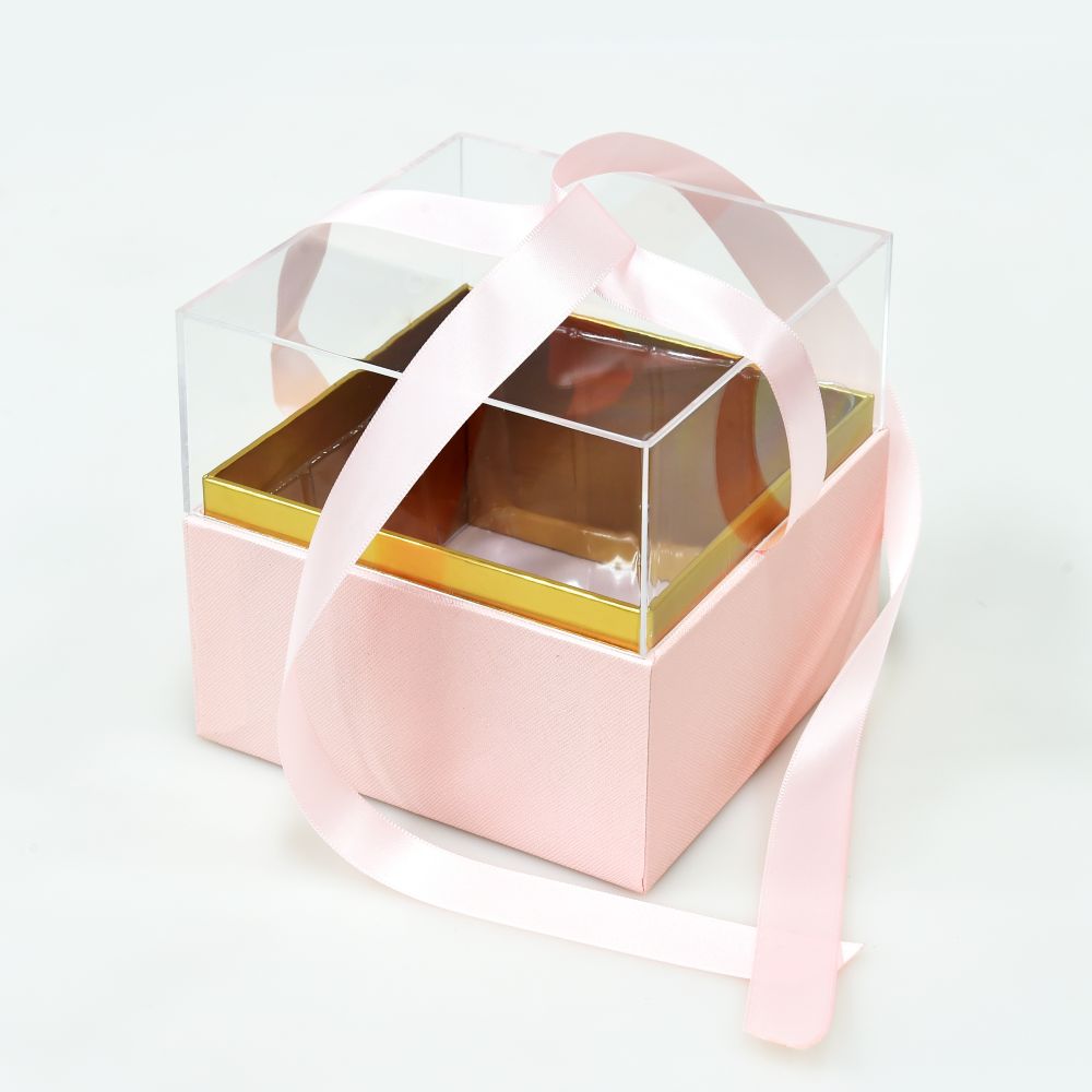 Gifts/Flower Box with Acrylic Cover – Pink – 13x13cm Square x 12cm Height
