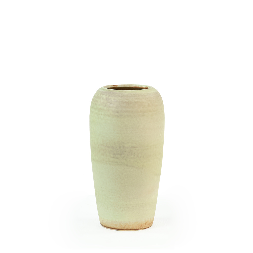 Handmade Ceramic Vase. Color: Lt. Brown. Size: TØ6cm X 20cmH X BØ7.5cm.