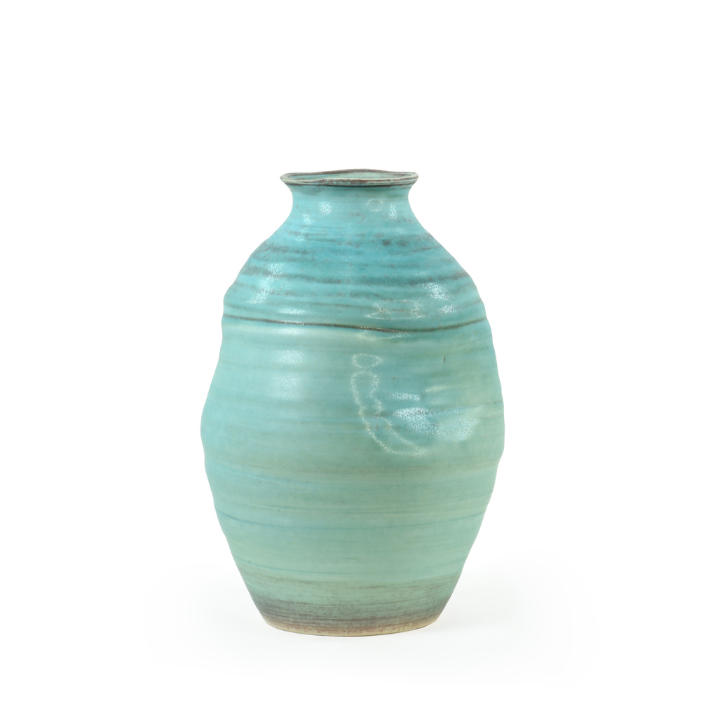 Handmade Round Irregular Ceramic Vase. Color: Blue. Size: TØ9cm X 30cmH X BØ12cm.