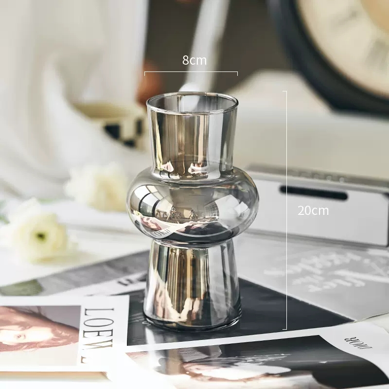 “Lamp Shape” Glass Vase in Smoked Gray Color. Size: 8cmØ*20cm H. Base: 9cm