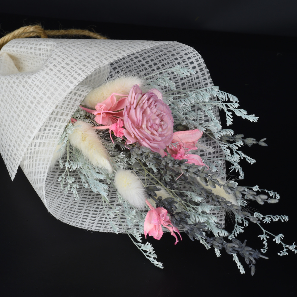 Mini Preserved Flower Bouquet. Color: Pink Blue. Size: Approx 8cmX24cmH.