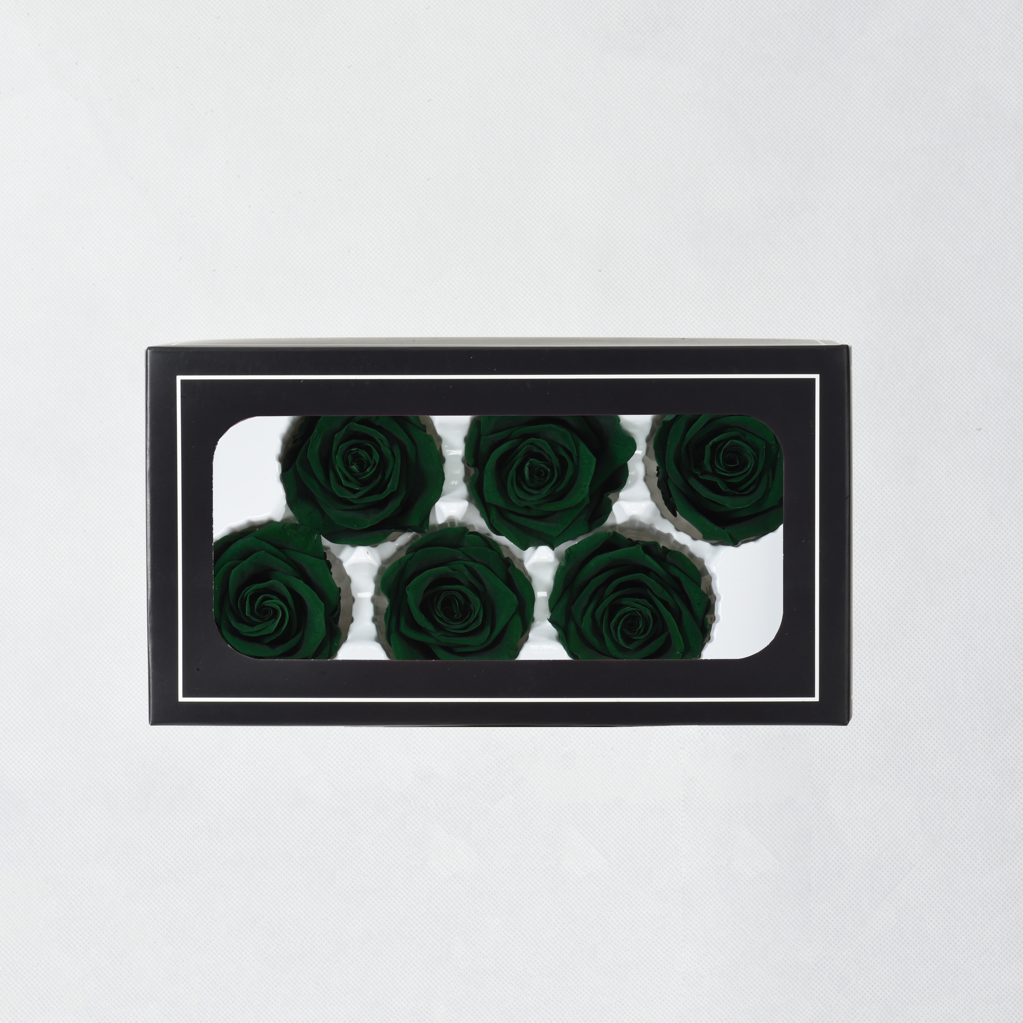Preserved Roses – Supreme Collection – Atrovirens. 5-6cmØ (6 Blooms per Box).