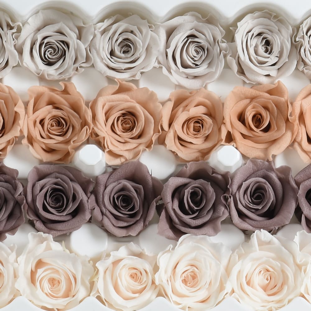 Preserved Roses – Supreme Collection – Coffee Mix Assorted. 1.5-2cmØ (24 Blooms per Box).