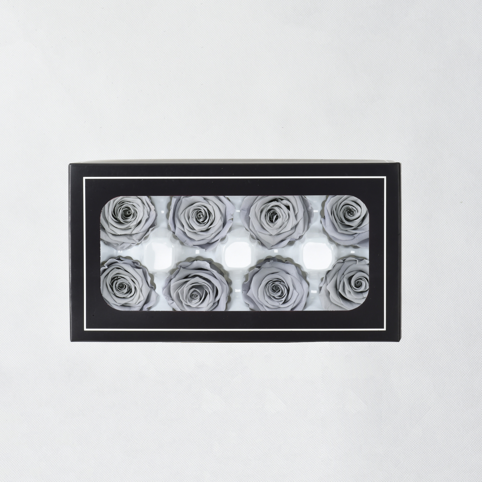 Preserved Roses – Supreme Collection – Light Grey. 4-5cmØ (8 Blooms per Box).