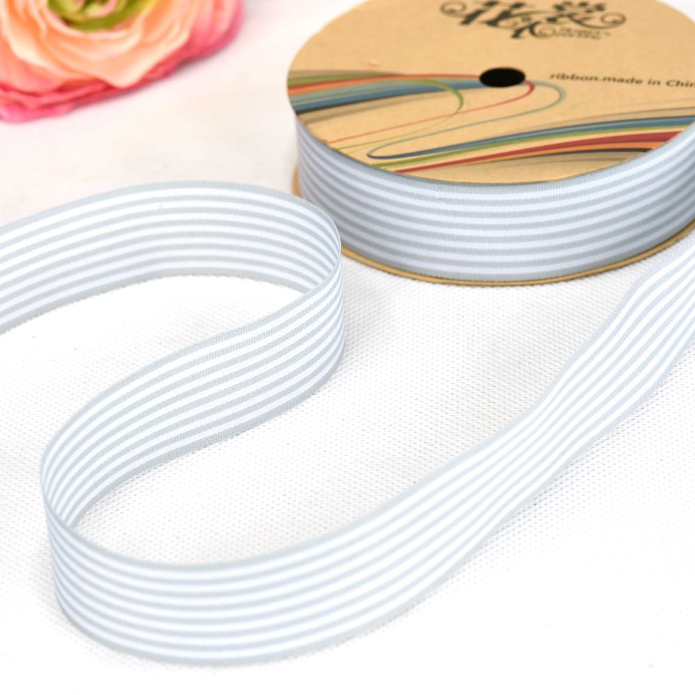Printed Satin Ribbon in Stripe Design. Grey – 28mm x 25yds