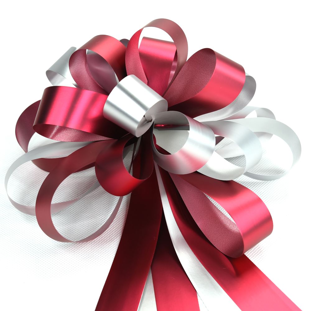 Pull Bow Metallic Ribbon – 30mm x 1100mm – #05 Maroon/Silver