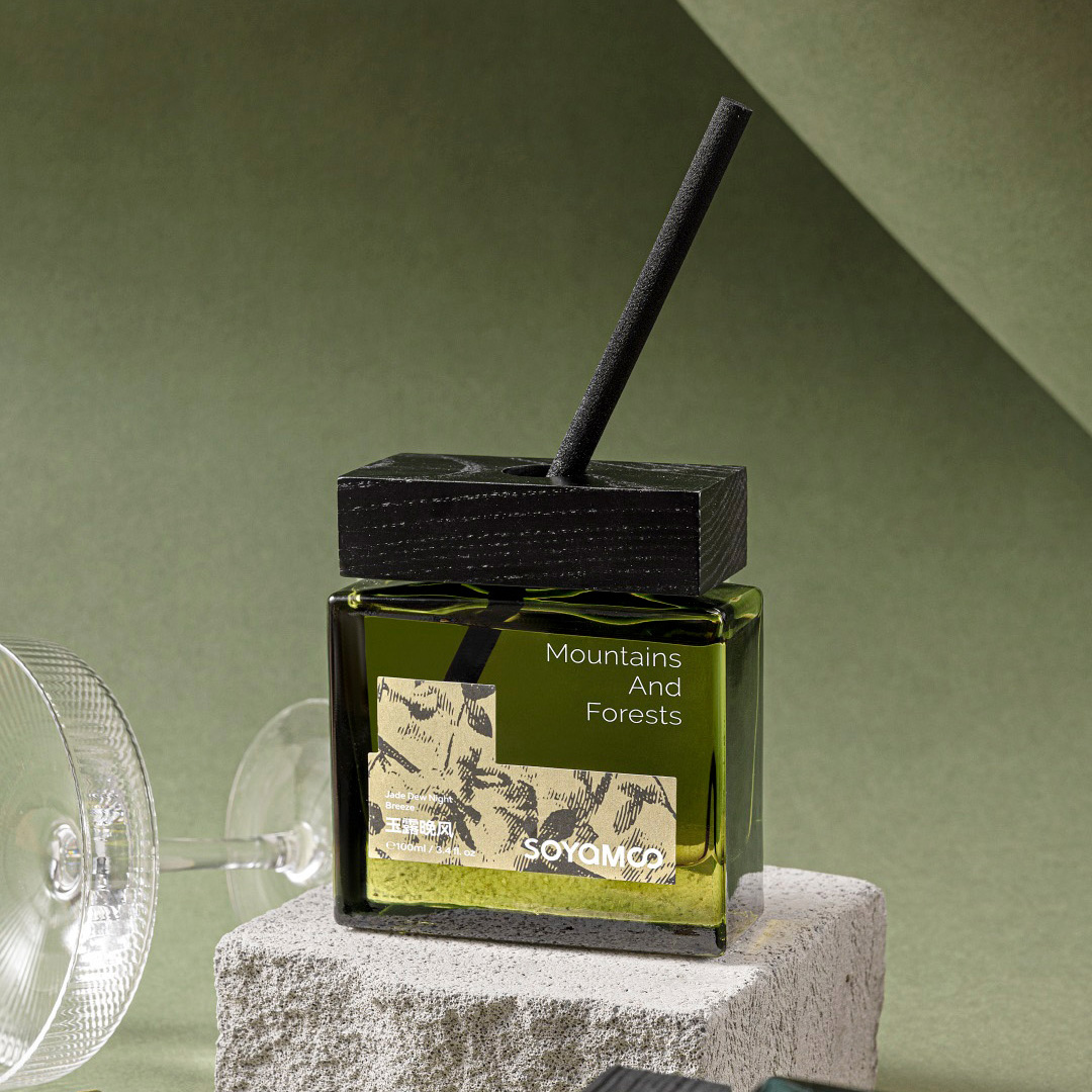 Reed Diffuser – WILDERNESS (Green). Scent: Jade Dew Evening Breeze. Size: 100ml Bottle. 9cm x 10cmH