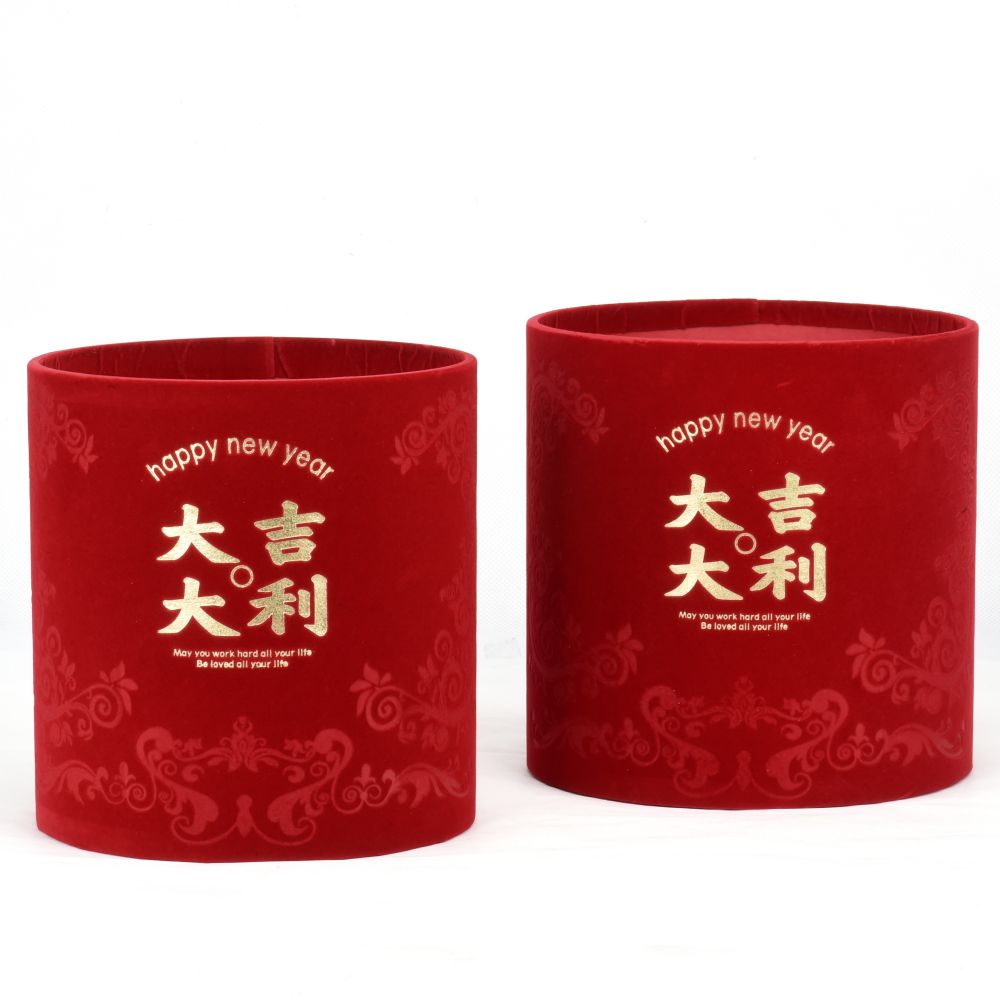 Round Velvet Cylinder Box – set of 2 pcs. Color: Wine Red (“GOOD LUCK”) – 17.5cmØ x 17.5cmH / 16.5cmØ x 16.5cmH