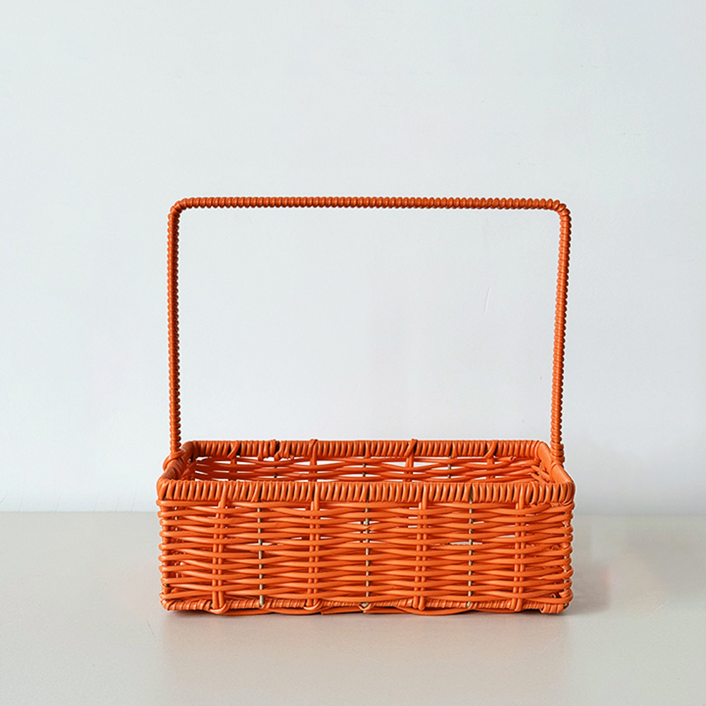 Willow Basket – Rectangle Shape w/ Handle. Color: Orange. Size: 16 X 30 X 30cmH X Wall Ht 10cm.