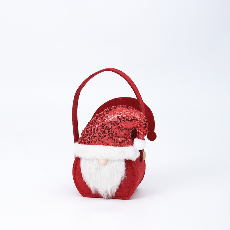 X’mas Felt Basket (#B-01) – Santa in Shimmering Red Cap. Size: 11.5cmL x 8cmW x 22cmH