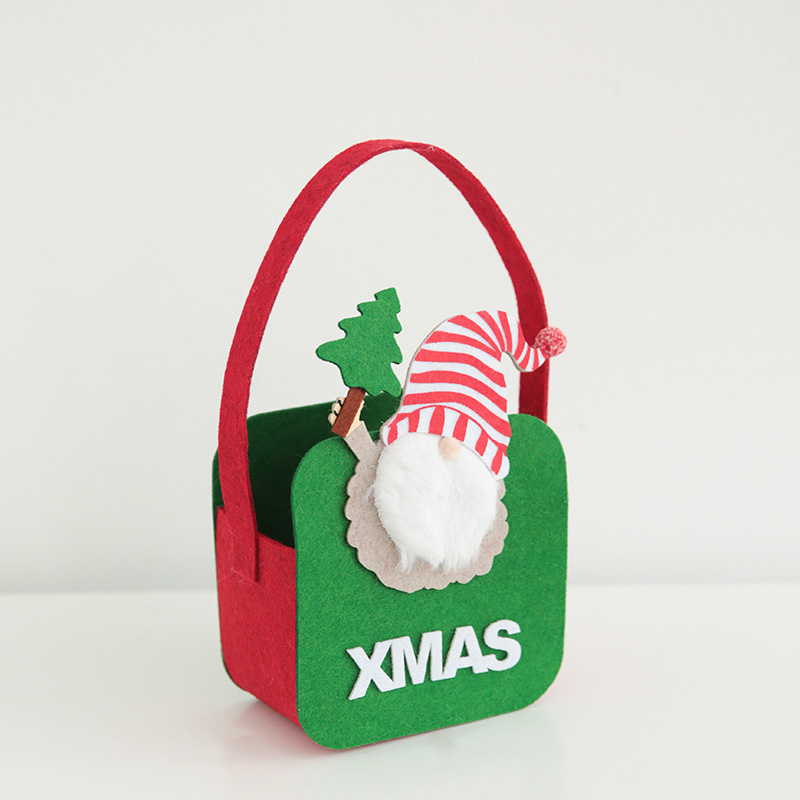 X’mas Felt Basket (#C-02) – Santa w/X’mas Tree & Red/White Stripe Cap. Size: 12.8cmL x 7.5cmW x 24.5cmH
